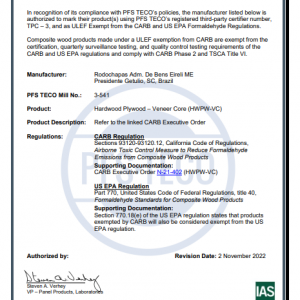 Certificado CARB PFS TECO